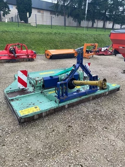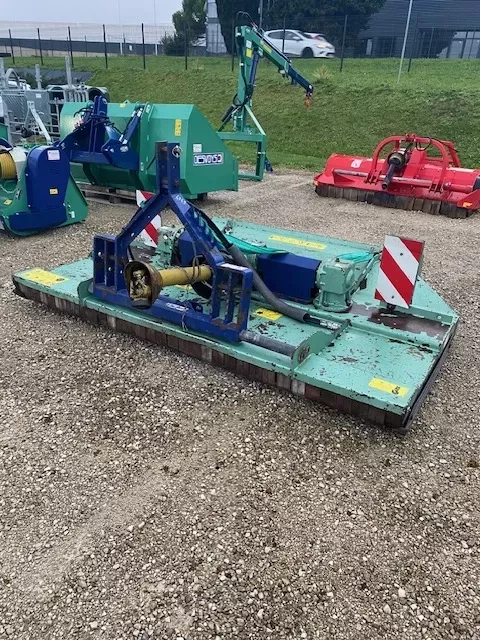 GIROBROYEUR DESVOYS modèle 7127 Largeur de travail 2.60m largeur hors tout : 2.69m, 2 rotors mono lames, 4 contre couteaux, option : déport hydraulique, attelage catégorie 2, prise d'huile push pull.